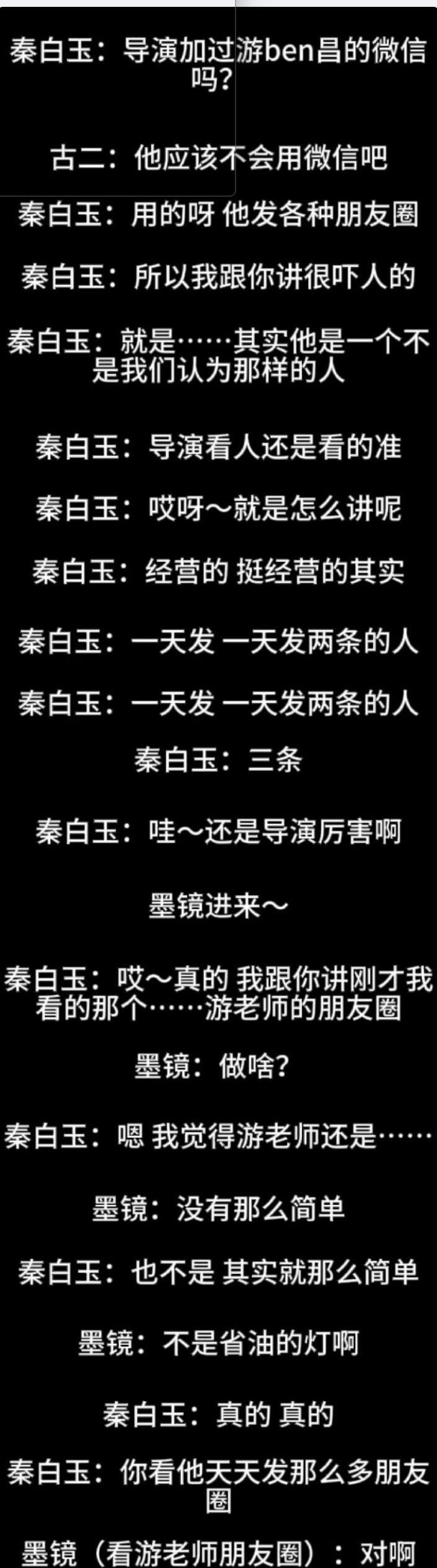 3编号:003香港殿堂级导演王家卫,在执导电视剧《繁花》期间,与女编剧秦雯之间的私密对话记录被工作人员古二公开。
